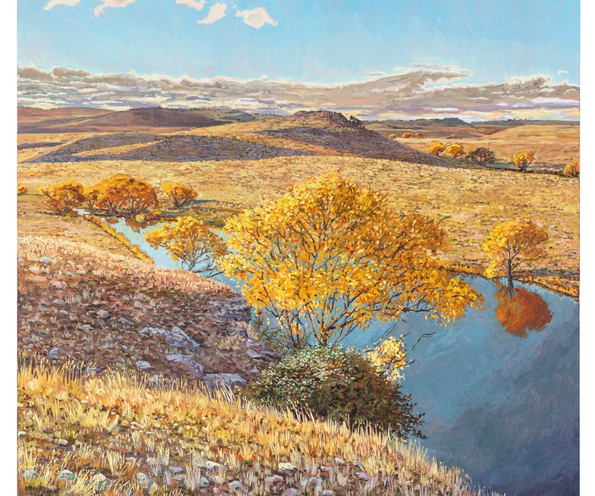 Her inaugural solo exhibition with King Street Gallery in 2017, Residents of Bibbenluke Lodge, featured a series of portraits of her ‘beloved animals and their unique personalities’. (John McDonald, 2017 Catalogue Essay). The subject matter of her 2019 solo exhibition Bibbenluke Botanicals, like Residents of Bibbenluke, is a ‘reflection of her tendency to paint things in which she has a deep personal affection’ (Why paint a vase of flowers, Anne Ryan, 2019, Catalogue Essay). Lucy’s 2022 solo exhibition Cambalong Creek, was the result of three years of painting the creek on Gunningrah, setting up her easel in all weathers. ‘She worked in roaring, dusty winds while the drought wore on. When it broke, she worked knee-high in fresh grass. In this exhibition Lucy pays homage to Cambalong Creek in all its seasons and rugged beauty’ (Elizabeth Fortescue, 2022, Catalogue Essay).
