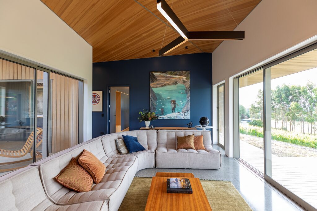 Above Alpine Lake by Euan Macleod, installed in the home of Lesley Melody and Nigel Dalton. Photograph courtesy of Home Magazine NZ, 2025.