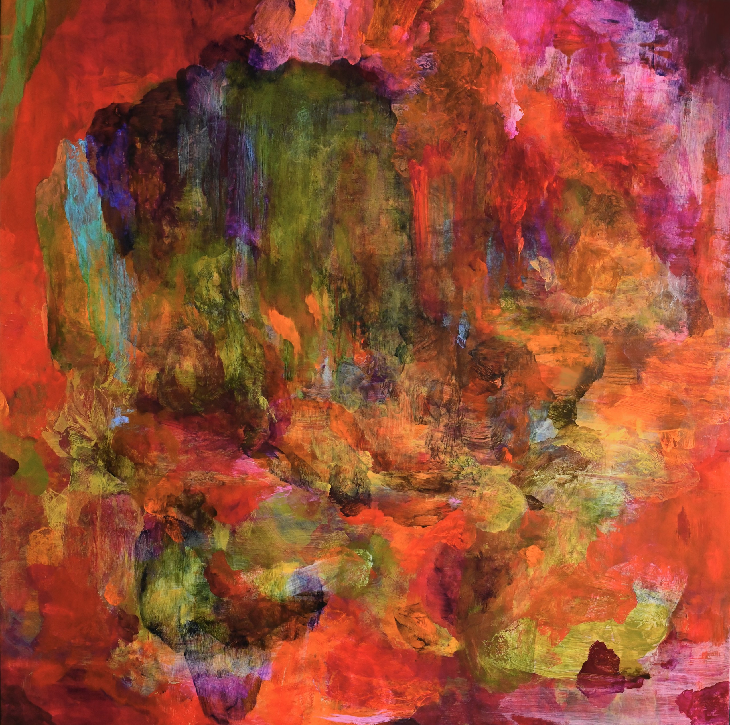 John Bartley, 'Garden of Earthly Delights', 2024, acrylic on canvas, 122 x 122 cm, framed.