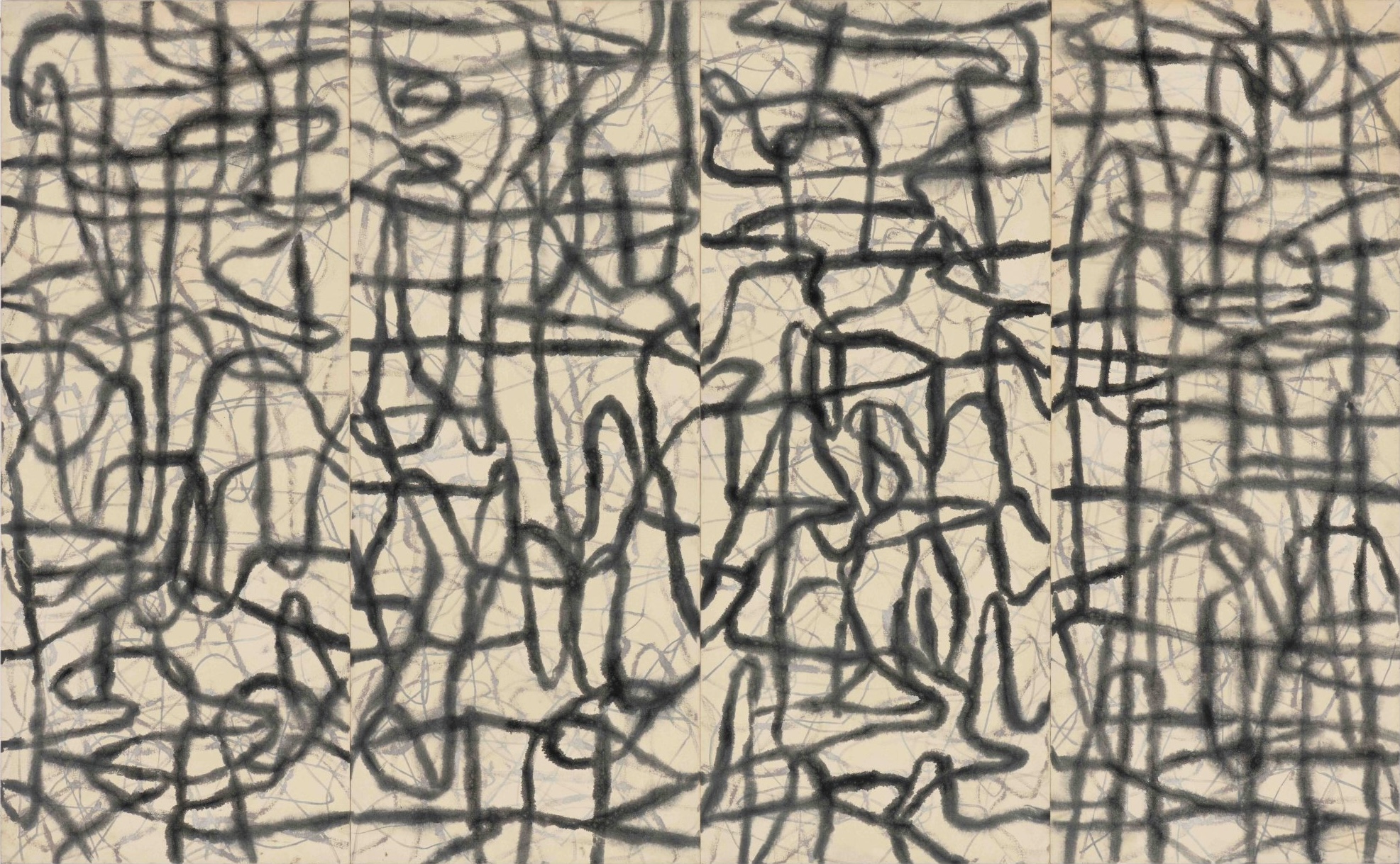 The work of the late John Peart grows in stature with time. A painting such as his Shadowgrille, 2009, possesses a wonderful spatial ambiguity where air seems to circulate among the abstracted shapes with forms breathed onto the canvas suggesting their own space and magic despite the monochromatic restrictions.